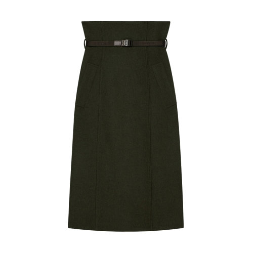 Givenchy/纪梵希 22年秋冬新款 女士军绿色羊毛混纺法兰绒中长款裹身裙半身裙BW40NA14L2-309