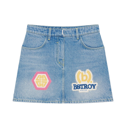 Givenchy/纪梵希 23年早春新款 BSTROY联名系列 女士浅蓝色纯棉刺绣贴片牛仔短裙BW40KR5Y4B-452