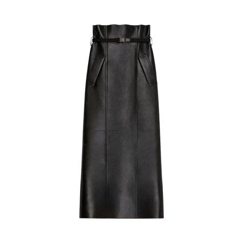 Givenchy/纪梵希 22年秋冬新款 女士黑色柔软羊皮革长款裹身裙BW40ML610N-001