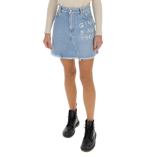 GIVENCHY 纪梵希 女士 服装 蓝色字母LOGO印花棉质半裙牛仔裙 女士半身裙 GIVENCHY 纪梵希 女士蓝色半裙 BW40GL50D1-452