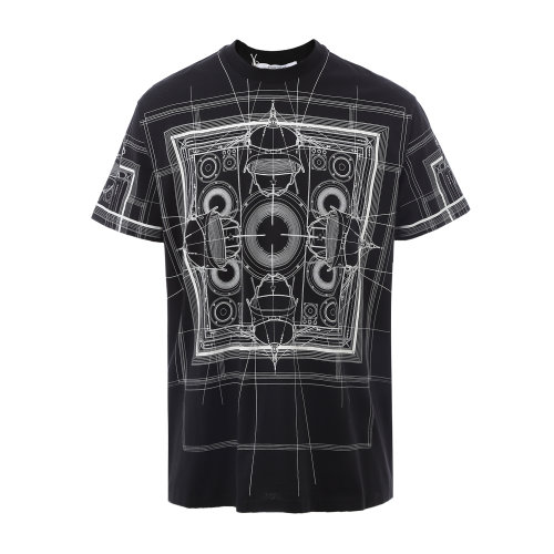 Givenchy/纪梵希 男士黑色棉质印花装饰圆领短袖上衣T恤 BM70RB3002-001