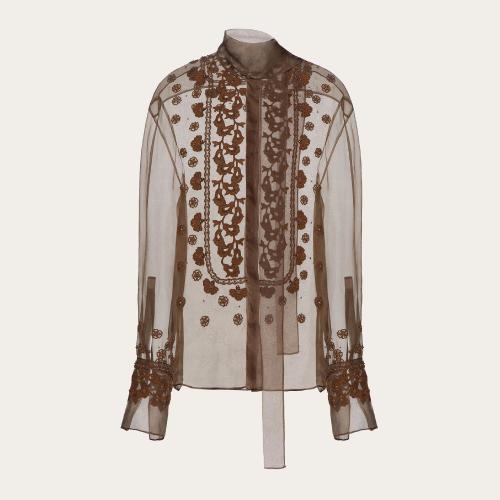 VALENTINO华伦天奴 22年秋冬 女士 长袖衬衫 CHEMISIER BRODé EN ORGANZA XB0AB3G11C8514