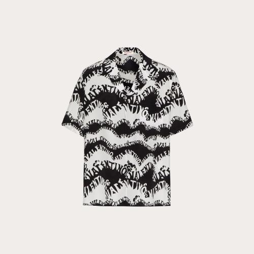 VALENTINO华伦天奴 22年秋冬 男士 短袖衬衫 CHEMISE BOWLING EN SOIE IMPRIMé WA_VES VALENT