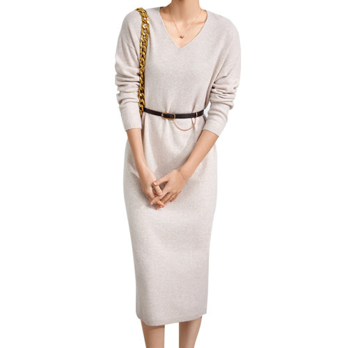 GeleiStory/GeleiStory 针织连衣裙女装秋冬中长款毛衣裙子宽松长袖v领打底裙内搭 女士针织衫/毛衣
