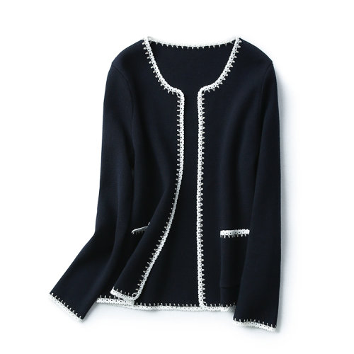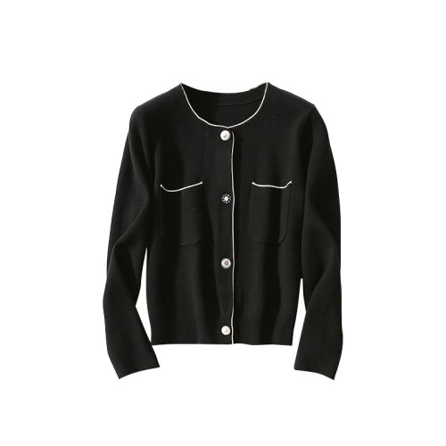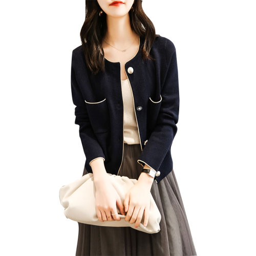GeleiStory/GeleiStory 优雅小香风珍珠钻扣亮丝镶边羊毛针织短款开衫 女装>女针织衫/毛衣>女士针织衫/毛衣