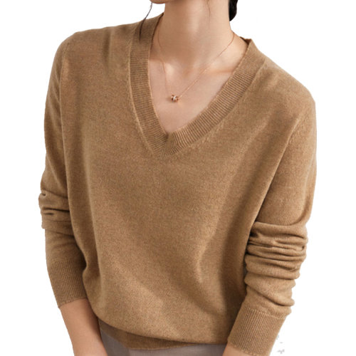 GeleiStory/GeleiStory 2022年秋冬羊绒针织衫长袖v领羊毛打底衫纯色百搭套头上衣女士针织衫/毛衣