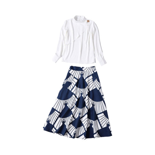 GeleiStory/GeleiStory 春夏新款气质百搭立领折位白衬衫高腰洋气印花半身裙两件套装 女装>女士套装>女士休闲套装