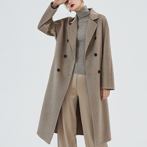 GeleiStory/GeleiStory秋宽直筒翻领简约腰带链条长款双面呢羊毛大衣毛呢外套女士大衣