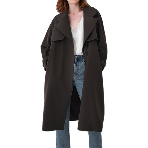 GeleiStory/GeleiStory 秋季新款纯色简约气质插肩袖中长款风衣外套 女士风衣