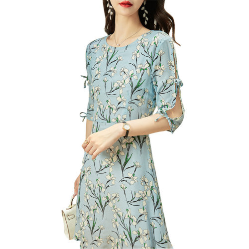 GeleiStory/GeleiStory 2021夏季新款显瘦薄款碎花中长桑蚕丝连衣裙 女士连衣裙