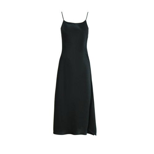 GeleiStory/GeleiStory2022春夏新款醋酸斜裁法式开叉不规则宽松礼服打底吊带连衣裙女