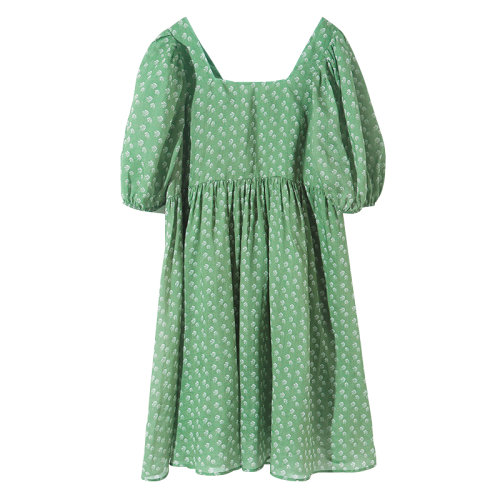 GeleiStory/GeleiStory 高支苎麻连衣裙女神清新泡泡袖方领中长裙宽松裙女装>女士裙装>女士连衣裙