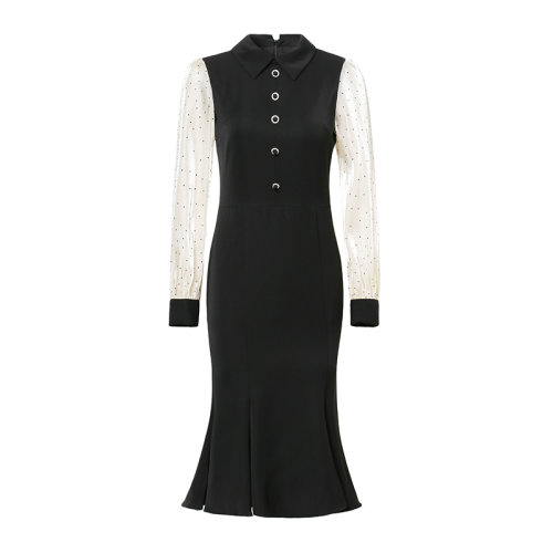 GeleiStory/GeleiStory 春秋新款连衣裙 时尚洋气拼接西装领波点长袖拼接显瘦小黑裙 女装>女士裙装>女士连衣裙