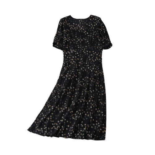 GeleiStory/GeleiStory 春夏新款法式复古茶歇裙气质时尚桑蚕丝长裙碎花裙子 女装>女士裙装>女士连衣裙