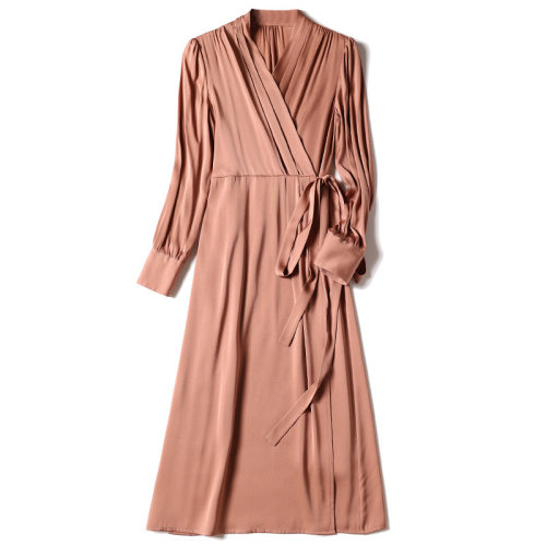 GeleiStory/GeleiStory 春夏新款系带遮肉收腰显瘦桑蚕丝裙子中长款 女装>女士裙装>女士连衣裙