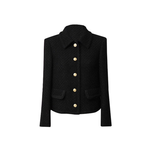 GeleiStory/GeleiStory 秋冬新款小香风外套气质时髦显瘦小香羊毛花呢金扣黑色短款西装翻领外套 女装>女士外套>女士夹克