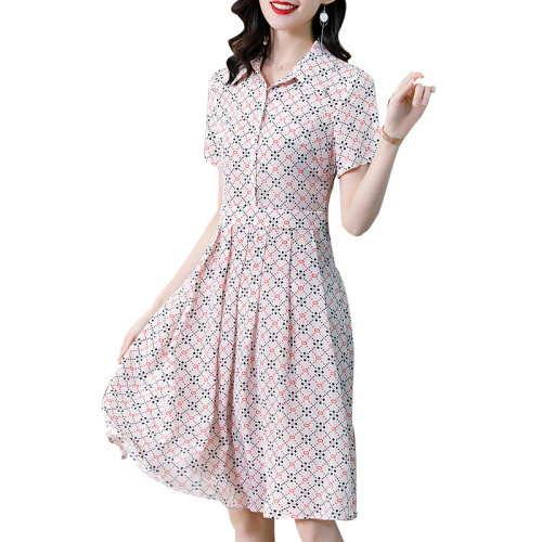 GeleiStory/GeleiStory 夏季新款桑蚕丝年轻款碎花衬衫裙气质真丝连衣裙 女装>女士裙装>女士连衣裙