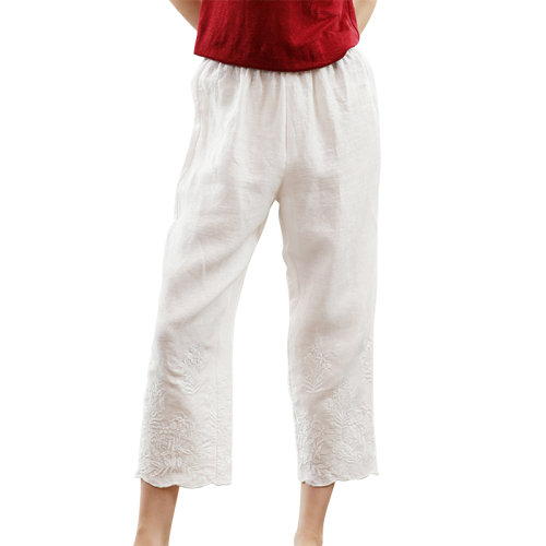 GeleiStory/GeleiStory 夏季新款 刺绣松紧亚麻休闲九分裤奢华 女士休闲裤
