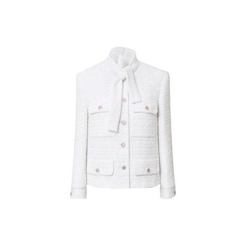 GeleiStory/GeleiStory 秋冬新款小香风外套气质时尚围巾领百搭白色短款花呢外套女士夹克