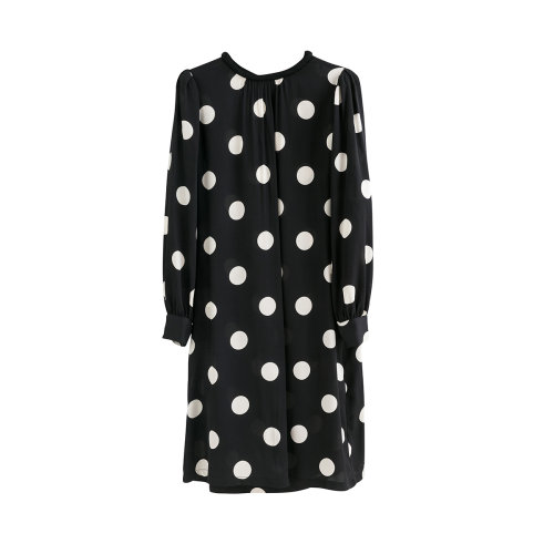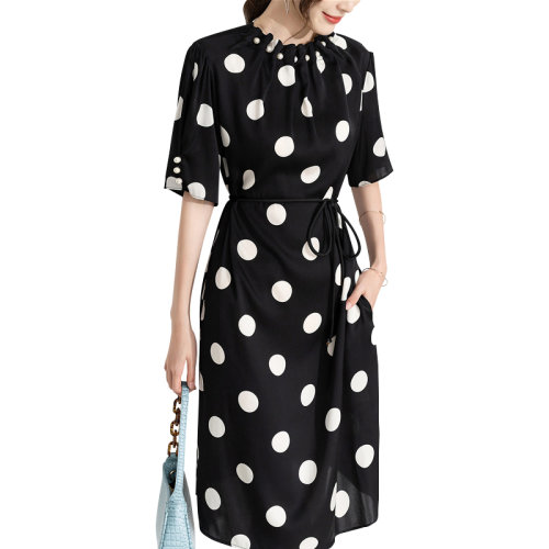 GeleiStory/GeleiStory 夏季新款摩登时尚圆领短袖拼色波点夏裙宽松中长款连衣裙 女装>女士裙装>女士连衣裙