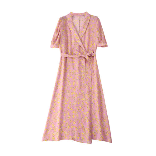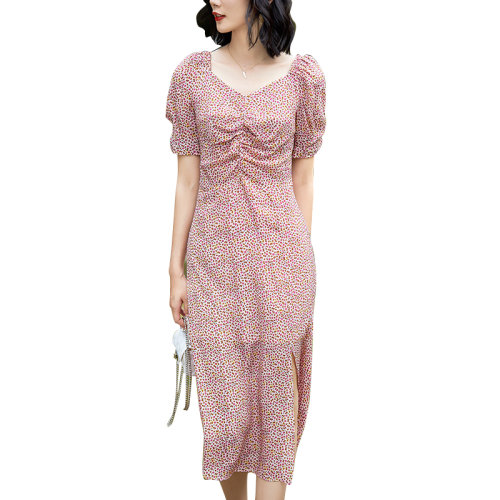 GeleiStory/GeleiStory真丝连衣裙女夏季新款法式高腰显瘦气质碎花长裙子女士连衣裙