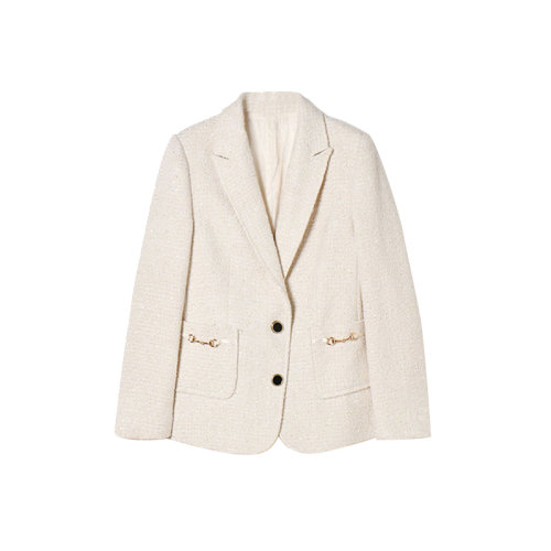 GeleiStory/GeleiStory 秋冬新款粗花呢气质翻领金丝单排扣贴袋西服短外套女士夹克
