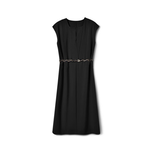 GeleiStory/GeleiStory 夏季新款法式直筒小落肩金属腰带气质轻熟中长款连衣裙 女装>女士裙装>女士连衣裙
