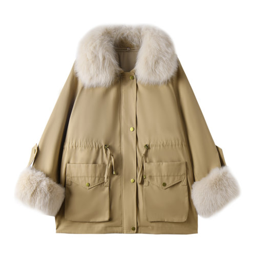 GeleiStory/GeleiStory 2022冬季新款宽松轻盈休闲显瘦可拆卸狐狸毛獭兔内胆皮派克服外套女士皮草
