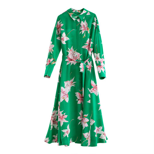 GeleiStory/GeleiStory 春季新款 系带印花桑蚕丝长袖衬衫裙真丝印花连衣裙 女士裙装>女士连衣裙