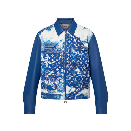 Louis Vuitton/路易威登 22年秋冬新款 MONOGRAM系列 女士蓝色皮革拼牛仔面料老花丝巾印花束腰夹克1AA7DT