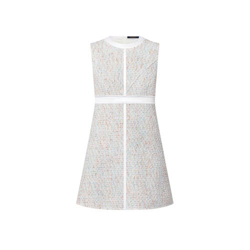Louis Vuitton/路易威登 22年秋冬新款 女士白色锦纶混纺粗花呢面料A字连衣裙1AA9YA
