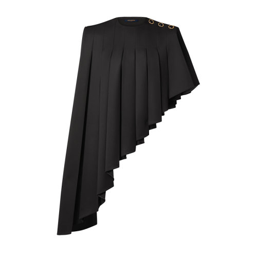 Louis Vuitton/路易威登 22年春夏新款 MOONLIGHT系列 女士黑色纯绵羊毛不对称褶裥斗篷1A9WJI