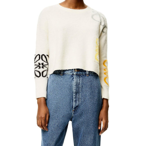 LOEWE/罗意威 22年秋冬新款 女士软白色拉绒羊毛提花LOGO圆领毛衣S359Y14KAN-1952