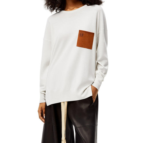 LOEWE/罗意威 Anagram系列 女士米白色羊毛口袋毛衣S359Y14K19-2621