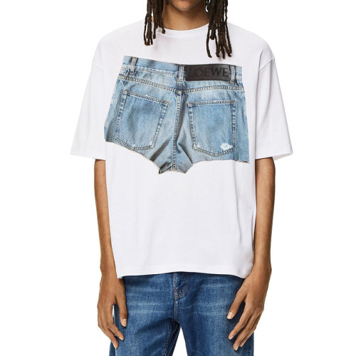 LOEWE/罗意威 22年秋冬新款 男士白色纯棉单宁布短裤印花T恤H526Y22X37-2100