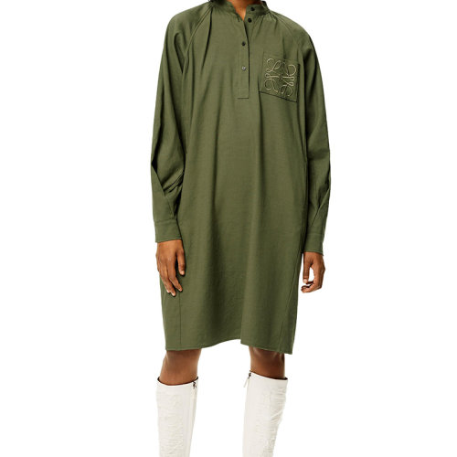 LOEWE/罗意威 22年秋冬新款 女士绿色系圆领束腰刺绣LOGO连衣裙S359Y09X79-4400