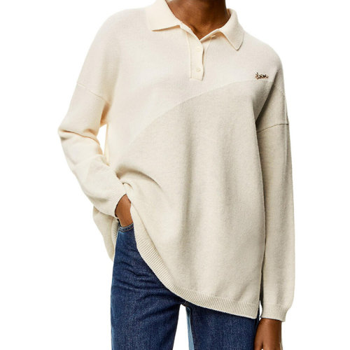 LOEWE/罗意威 22年秋冬新款 女士白灰色螺纹扣饰有金色LOEWE标志马球领毛衣S359Y14KAH-2116