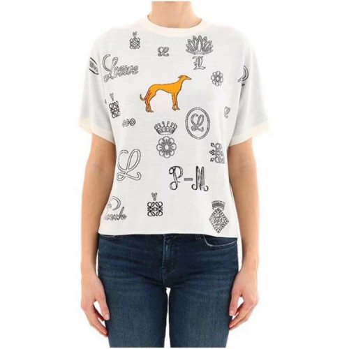 Loewe 罗意威 女士米黄色纯棉图案短袖圆领半袖T恤