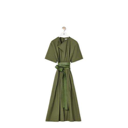 LOEWE罗意威 22年秋冬 女士 连衣裙 Belted midi dress in linen and cotton S359Y09X69-4400