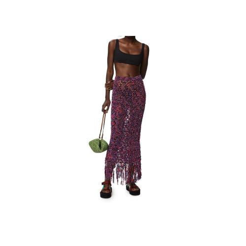 LOEWE罗意威 22年秋冬 女士 半身裙 Fringed midi skirt in polyamide S616Y17K15-3697