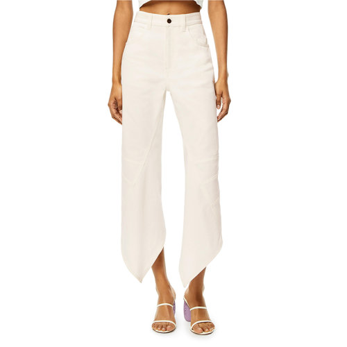 LOEWE/罗意威 22年春夏新款 女士乳白色纯棉单宁布弧形尖下摆牛仔裤S540Y11X15-2110