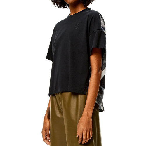 LOEWE/罗意威 22年秋冬新款 女士黑色/多色棉质真丝混纺纯棉小猫印花T恤S359Y22X22-1489