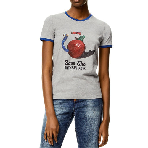LOEWE/罗意威 22年秋冬新款 女士麻灰色纯棉苹果印花短袖T恤S359Y22X24-1440