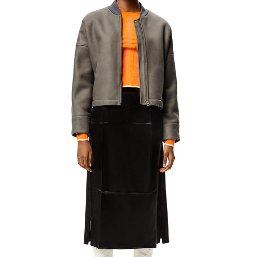 LOEWE/罗意威 22年秋冬新款 女士象牙灰色羊毛皮内有罗纹针织罗纹衣领夹克外套S359Y19L47-1214