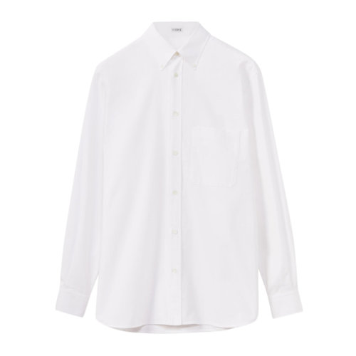 LOEWE/罗意威 男士白色棉质宽松款式正面纽扣长袖上衣衬衣衬衫 H526Y05W38-2100