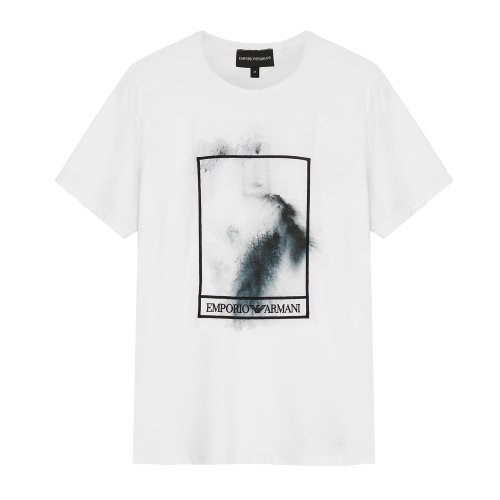 Emporio Armani/安普里奥阿玛尼 白色 男士水墨晕染图案丝光棉圆领短袖T恤 3H1T6P-1JQ3Z-0100