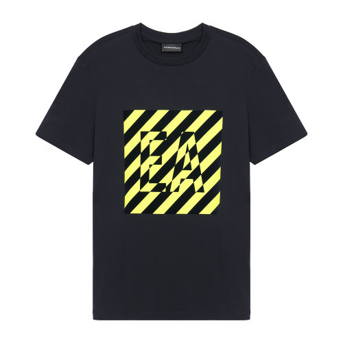 Emporio Armani/安普里奥阿玛尼 藏蓝色 男士EA图案印花丝光棉圆领短袖T恤 3H1TB7-1J30Z-0922
