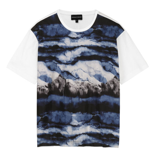 Emporio Armani/安普里奥阿玛尼 白色 男士抽象水墨印染图案圆领短袖T恤 3H1T6T-1JQ3Z-0100