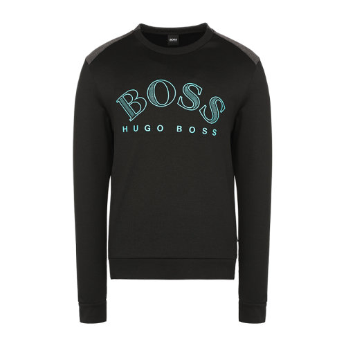Hugo Boss 雨果博斯 男装 服装 黑色棉质logo标识印花圆领长袖休闲宽松套头衫 男卫衣
