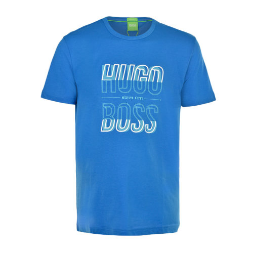 HUGO BOSS/雨果博斯 男士深蓝色棉质混纺氨纶经典字母徽标印花圆领上衣短袖T恤 TEE6-50325611-410